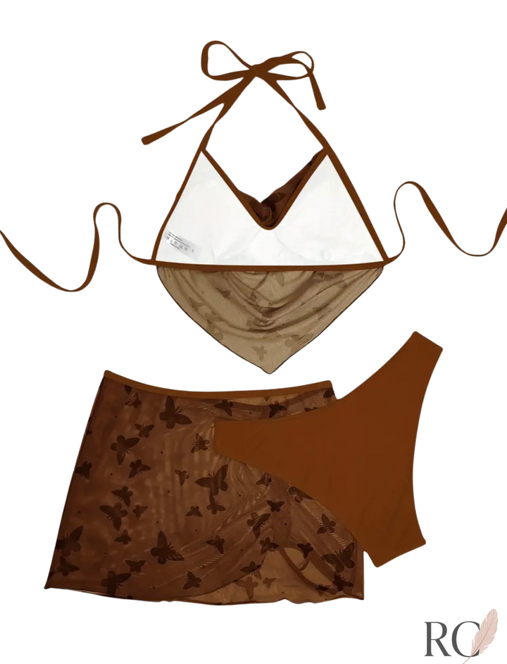 Unleash your inner goddess with this 3-piece Butterfly Bliss set , a dreamy mesh halter tie-back bikini paired with a high-cut bottom and a fluttery mesh cover-up skirt. Perfect for women who love whimsical elegance, it's made for poolside lounging, tropical escapes, and capturing golden-hour selfies.