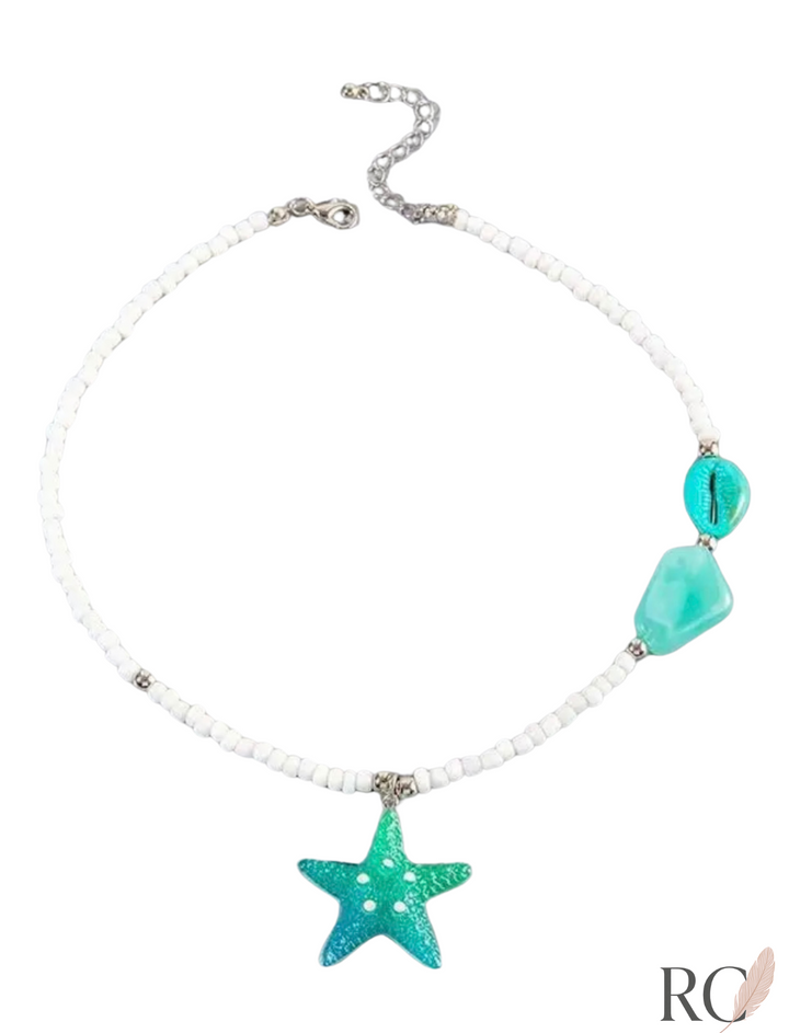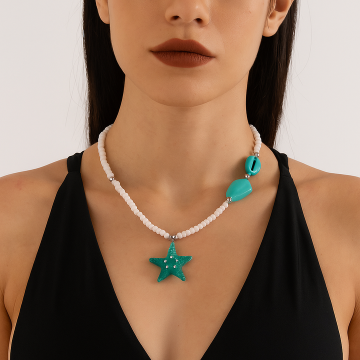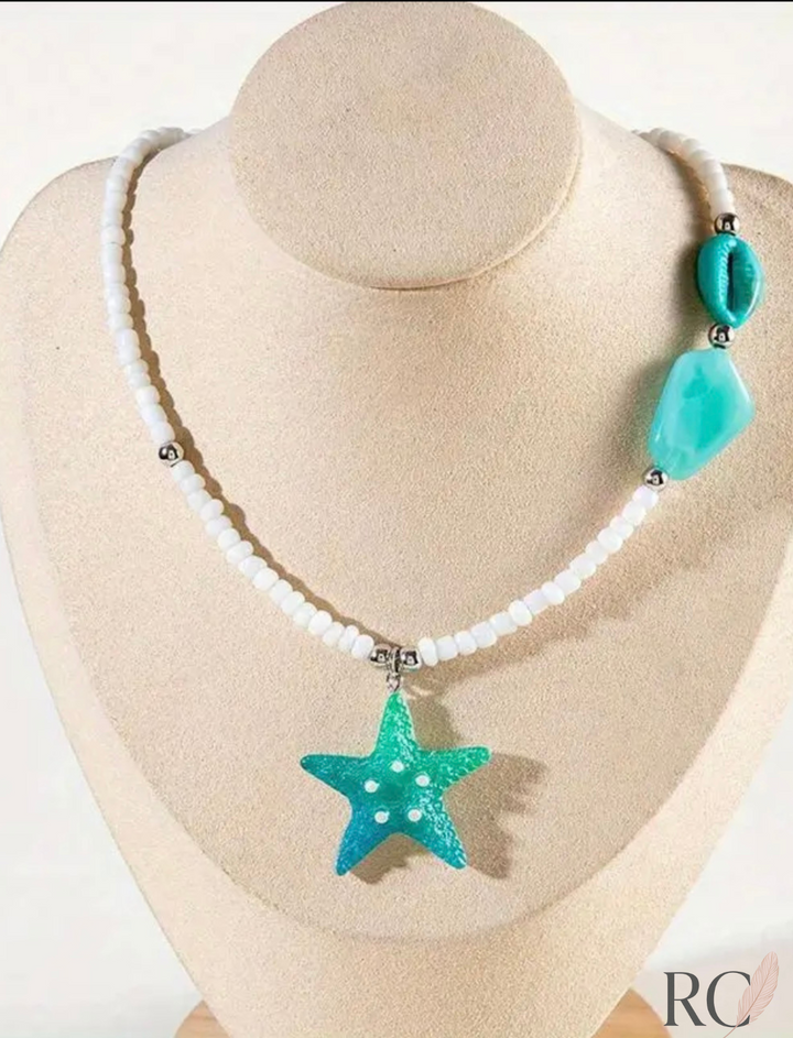 Celebrate your love for the sea with our Ocean Muse Pendant Necklace. Handcrafted with resin starfish, delicate shell charms, turquoise glass beads, and white rice beads, this necklace captures the essence of coastal beauty. It's a must-have for ocean lovers and boho souls alike