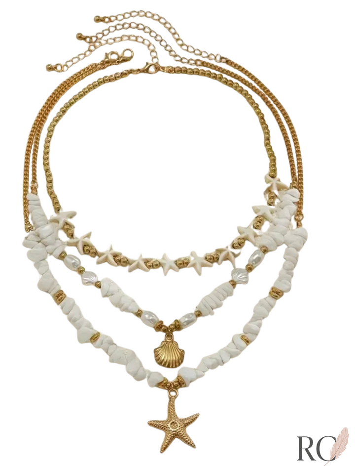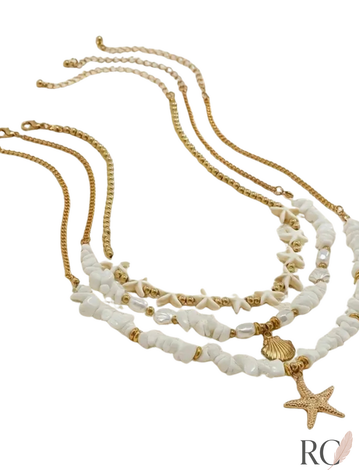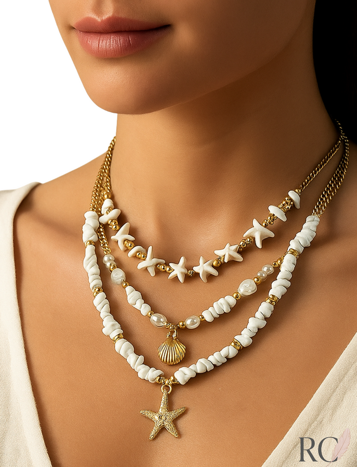 Turn heads with the Topical trio 3-Piece Layered Necklace Set. a versatile and fashion-forward accessory designed for women who love to keep it light, stylish, and beachy. Each necklace can be worn individually or layered together for that perfect summer vibe. Crafted to complement both your daily casuals and breezy vacation wear, this set is your go-to accessory for adding instant charm.